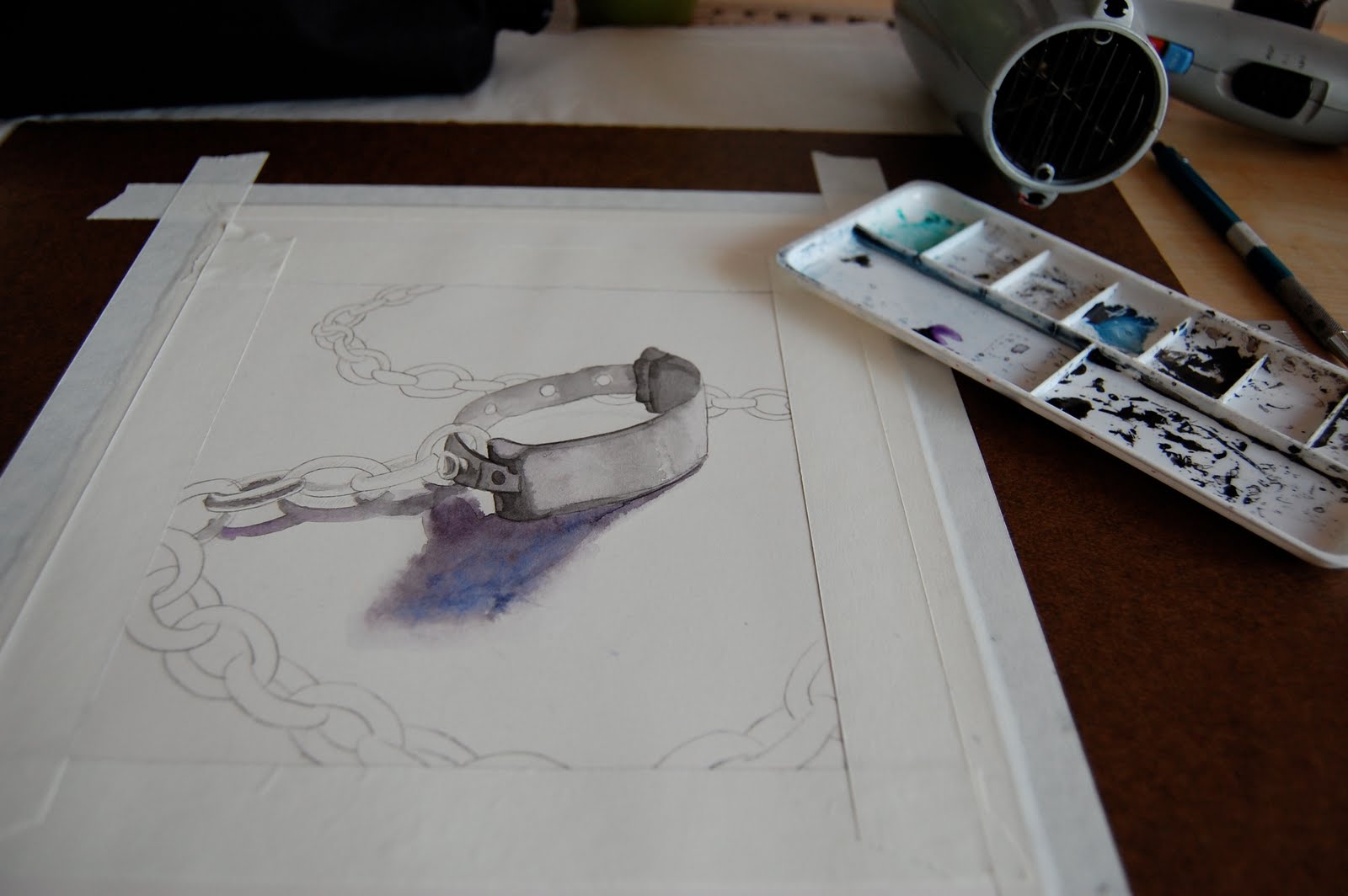 Here's the final sketch. I enlarged the chain so it would resemble a chain and shackle.